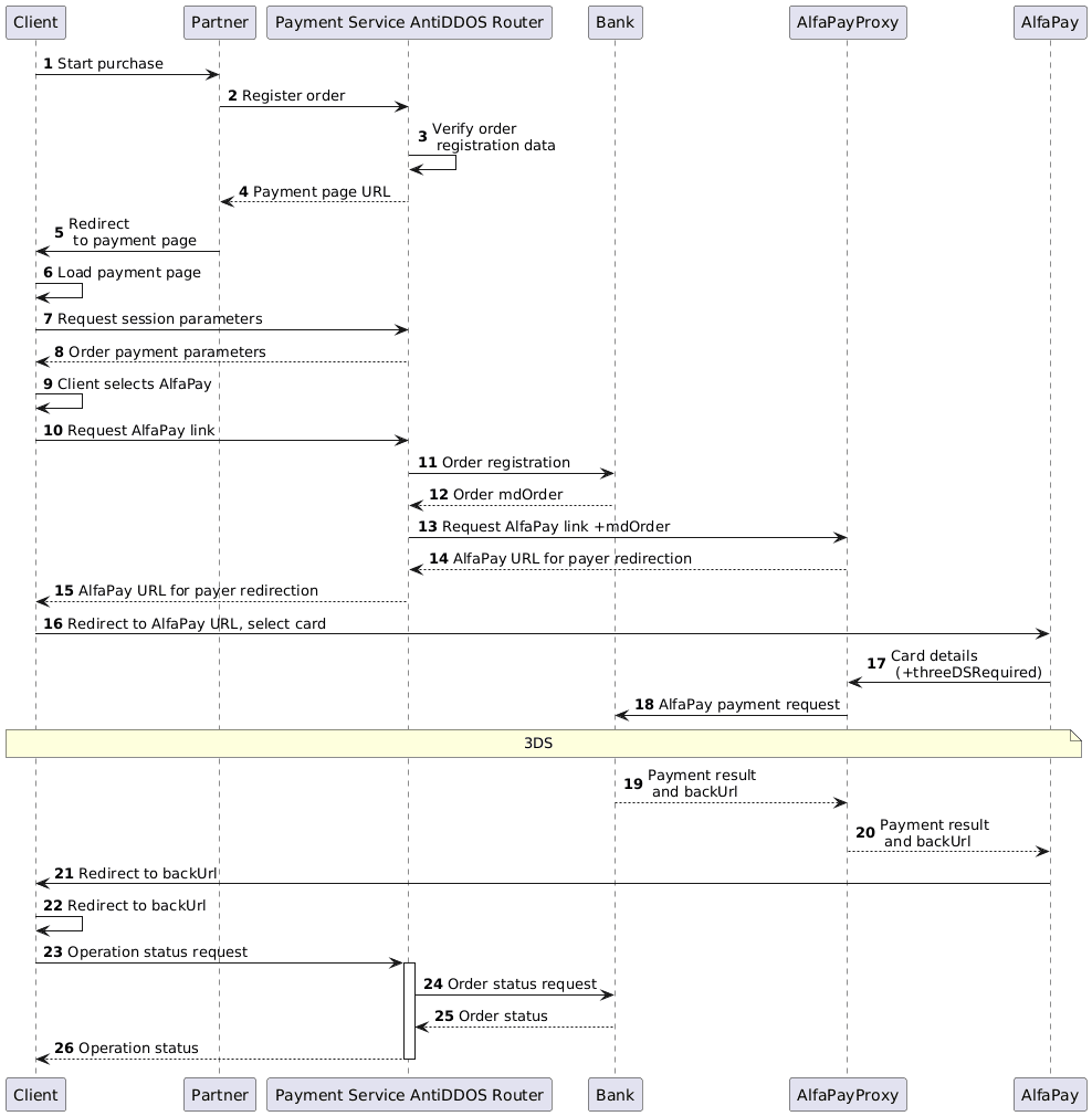 The payment service AntiDDOS Router supports Alfa Pay payments from the payment page.